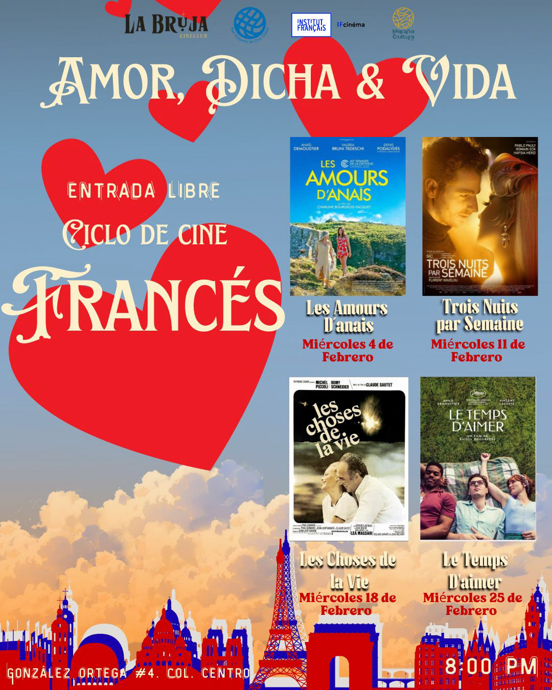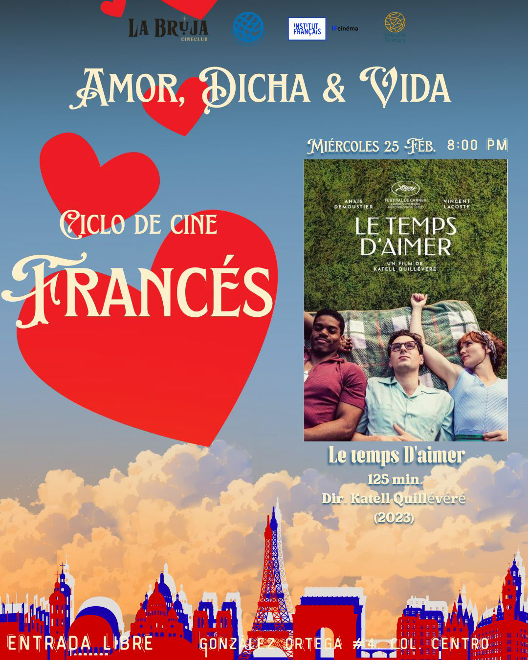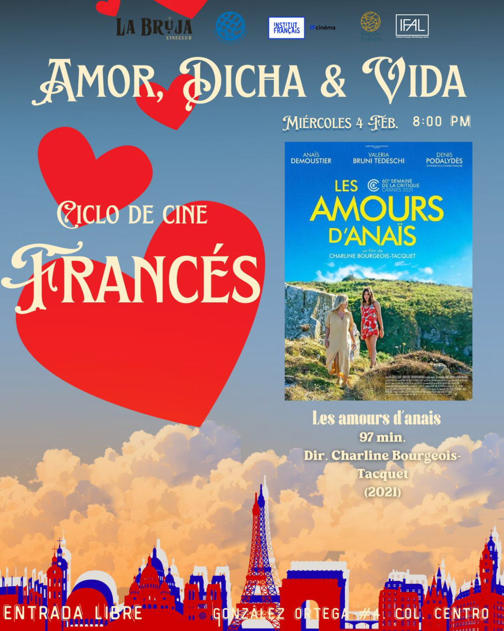 La Bruja Cineclub presenta este mes de febrero el ciclo “Amor, dicha y vida”, una muestra de cine francés que explora el romance, la identidad y los encuentros que transforman.