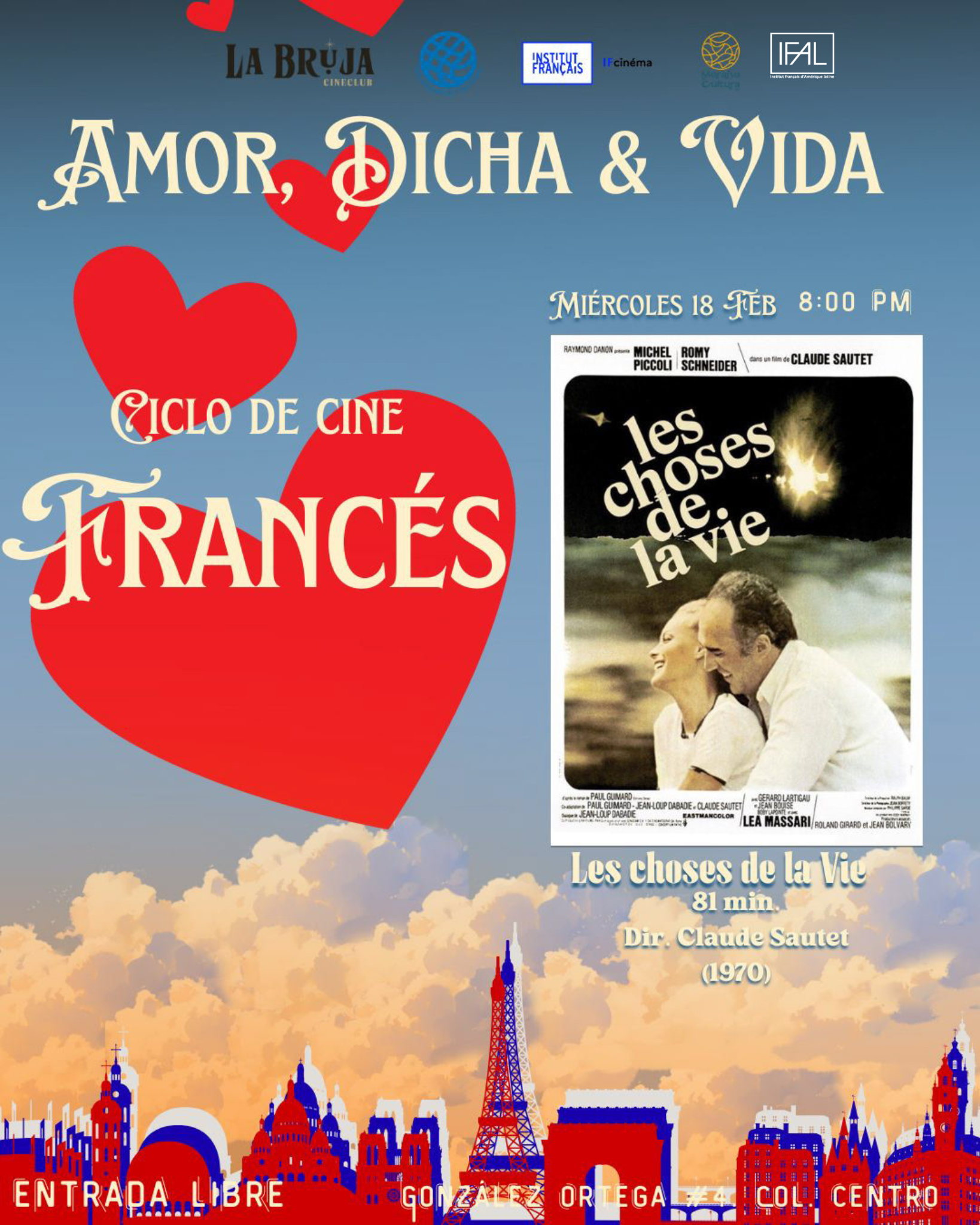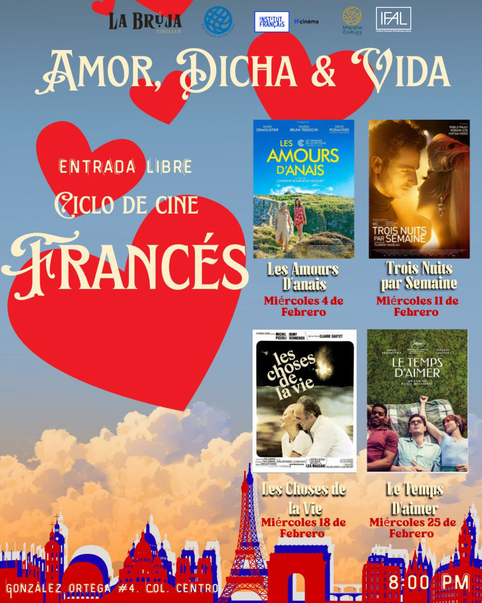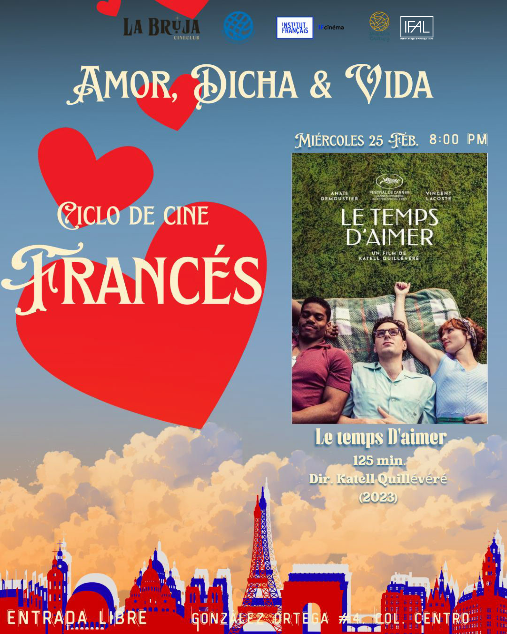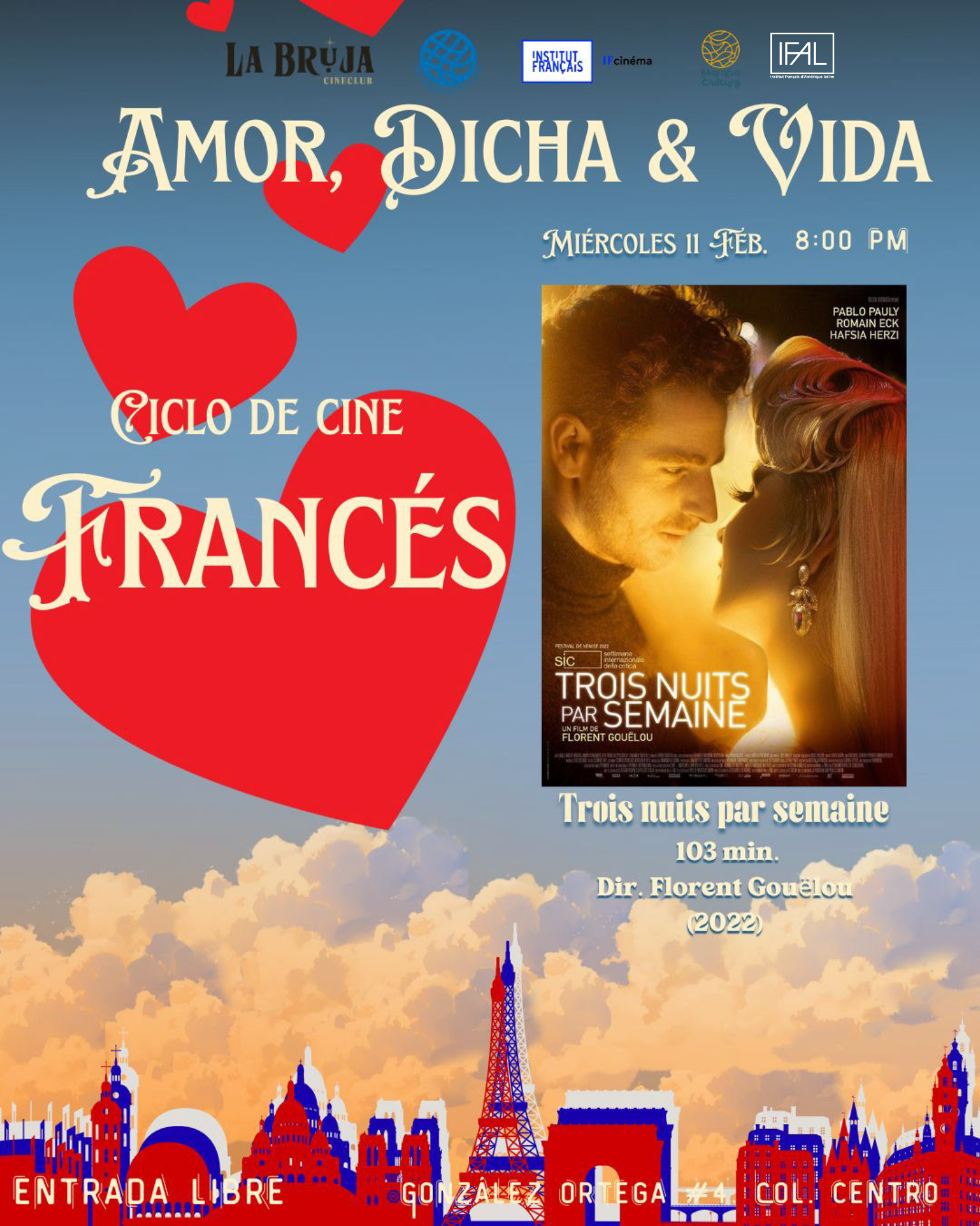 La Bruja Cineclub presenta este mes de febrero el ciclo “Amor, dicha y vida”, una muestra de cine francés que explora el romance, la identidad y los encuentros que transforman.