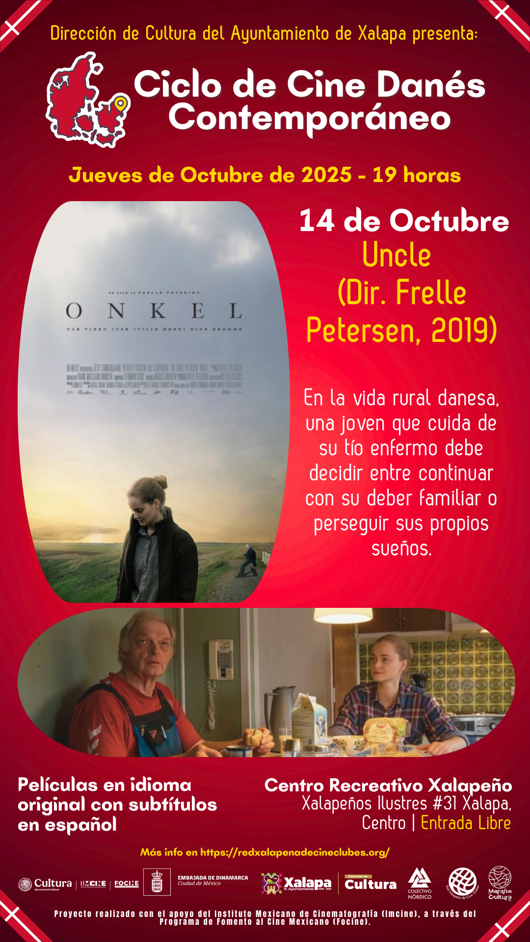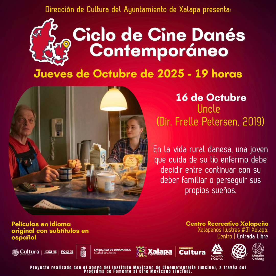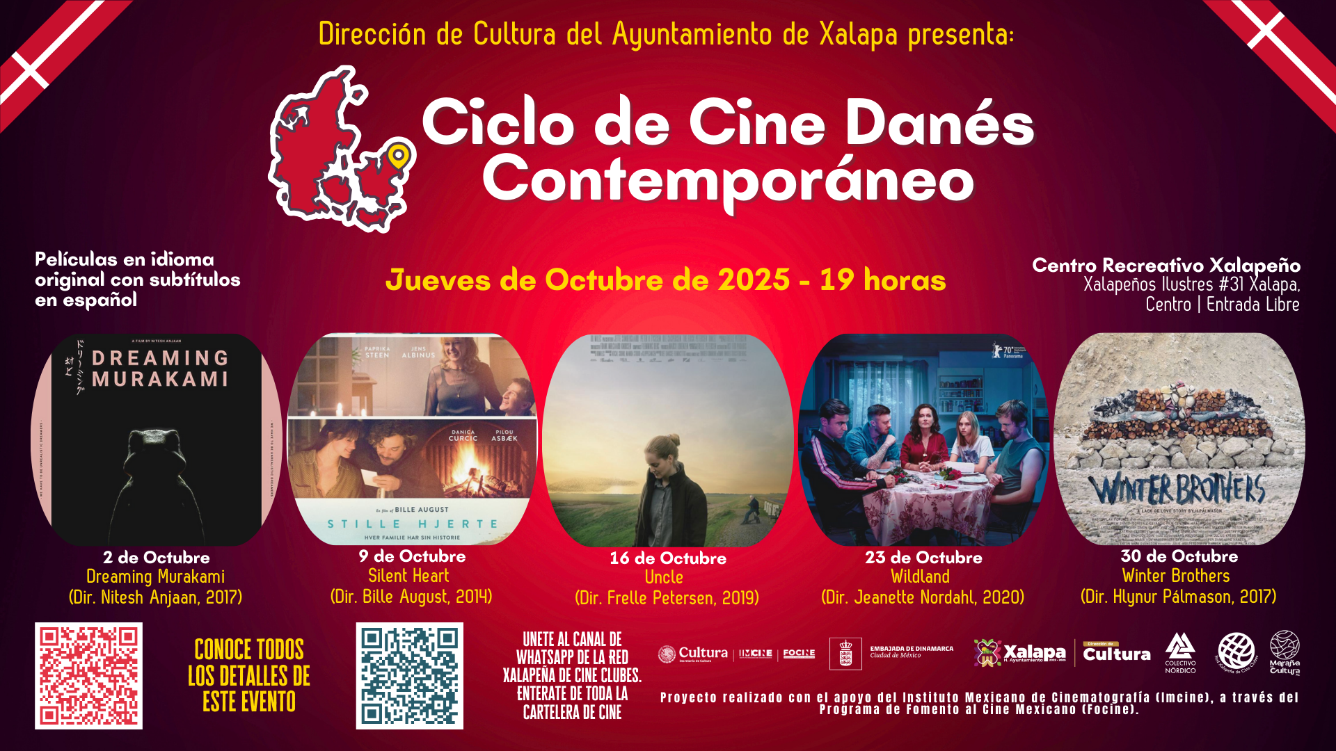La Dirección de Cultura del Ayuntamiento de Xalapa, en colaboración con la Embajada de Dinamarca, la Red Xalapeña de Cine Clubes, el colectivo Nórdicoen México y Maraña es Cultura A.C., se complace en presentar el Ciclo de Cine Danés Contemporáneo.