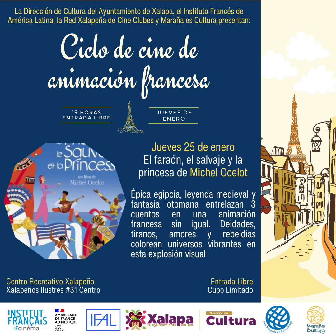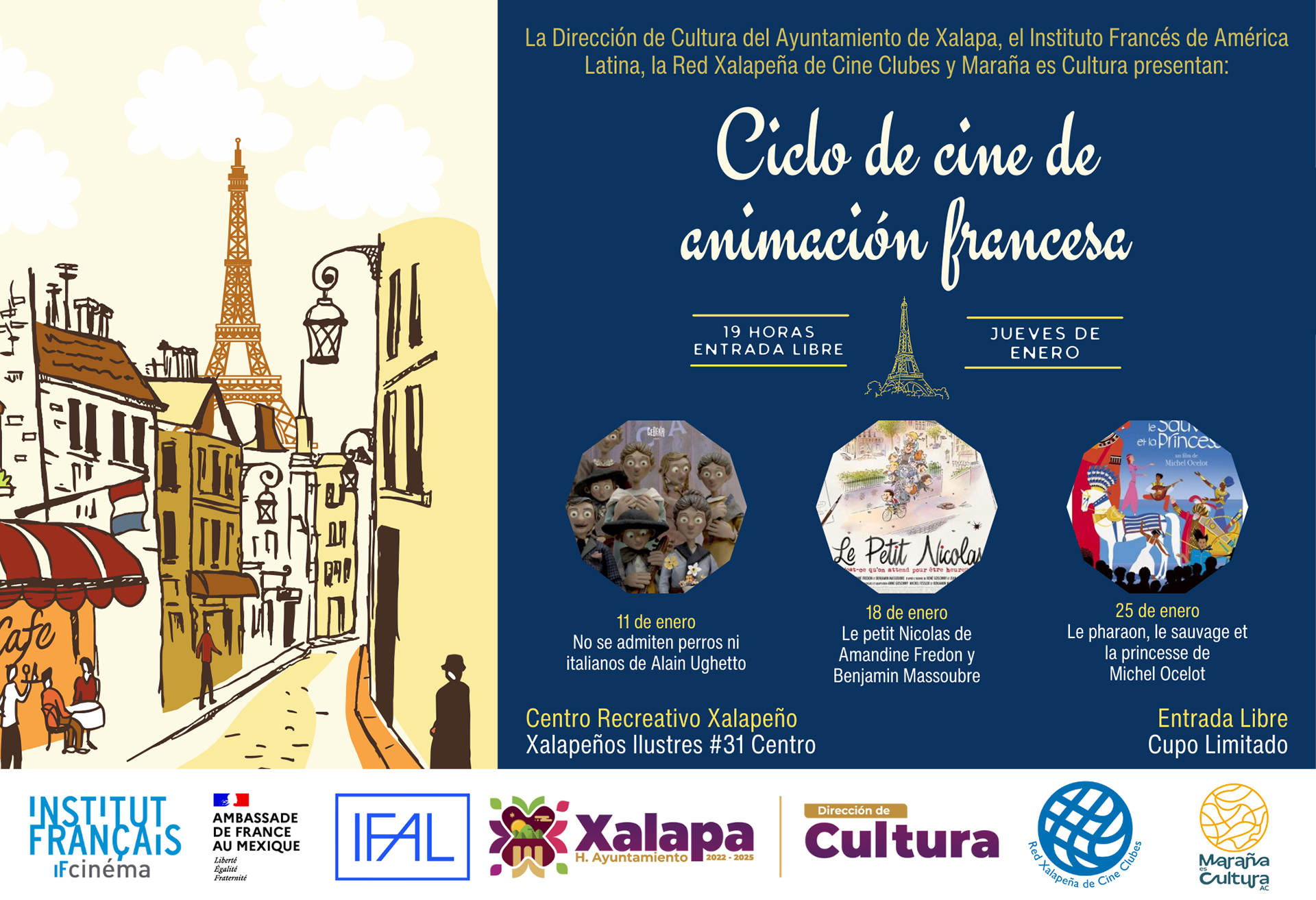 La dirección de Cultura del Ayuntamiento de Xalapa en colaboración con el Instituto Francés de América Latina (IFAL), Maraña es Cultura AC y la Red Xalapeña de Cine Clubes, proyectarán durante tres jueves de enero un ciclo de cine de animación francesa contemporánea.