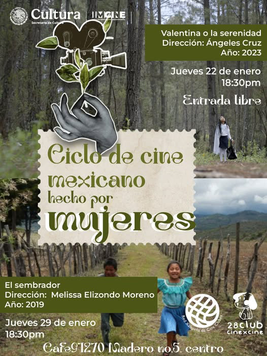 28clubcinexcine en colaboracion con la Red Xalapeña de Cine Clubes y apoyo del IMCINE, invitan al público a un encuentro para ver y conversar cine mexicano dirigido por mujeres, con historias que atraviesan el duelo, la infancia, la educación y la vida comunitaria.