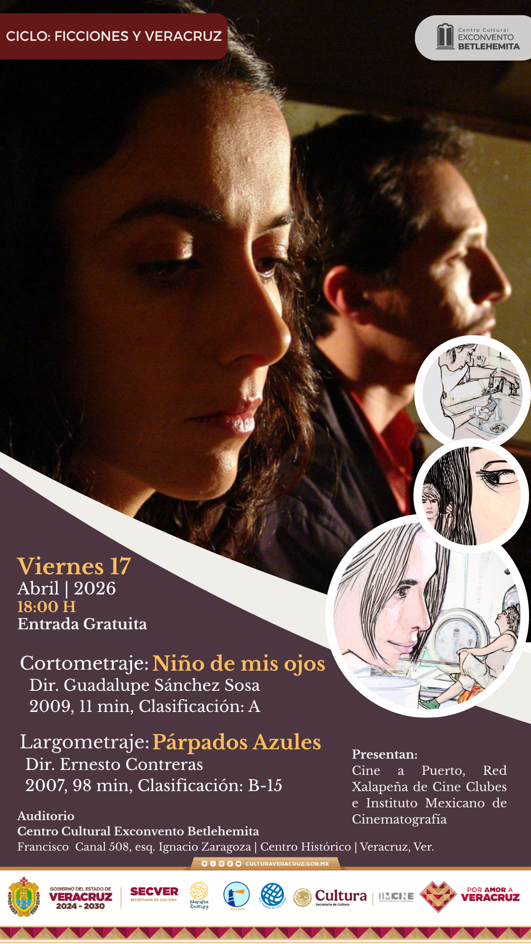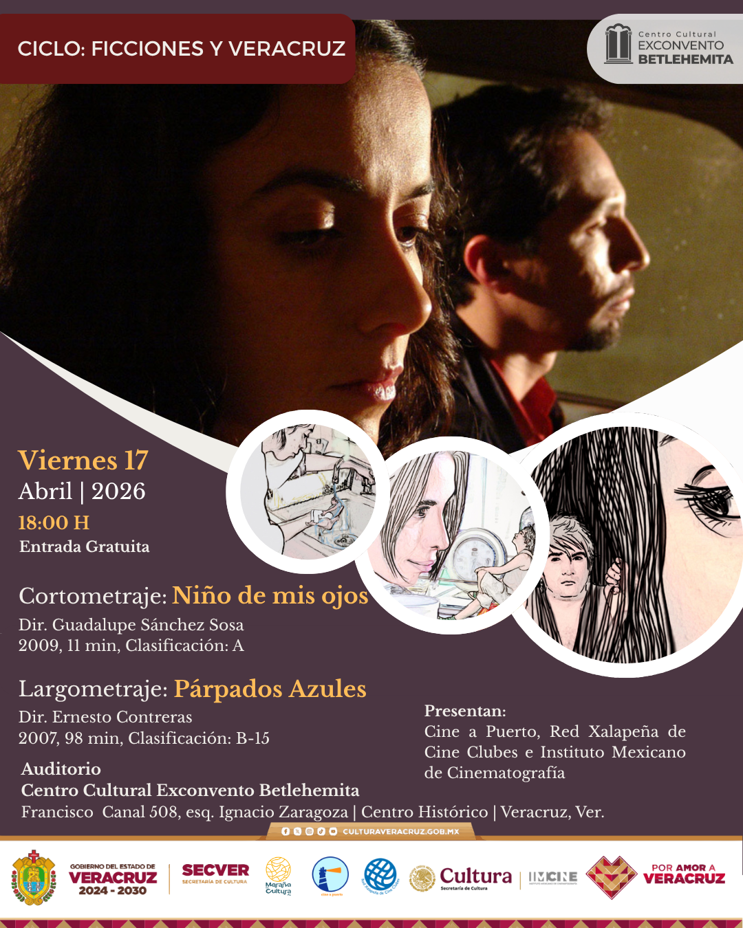 Las funciones se llevarán a cabo en el Centro Cultural Exconvento Betlehemita (Francisco Canal s/n, esquina con Zaragoza, Col. Veracruz Centro, Veracruz) con entrada libre, con cinedebate al finalizar la función.
