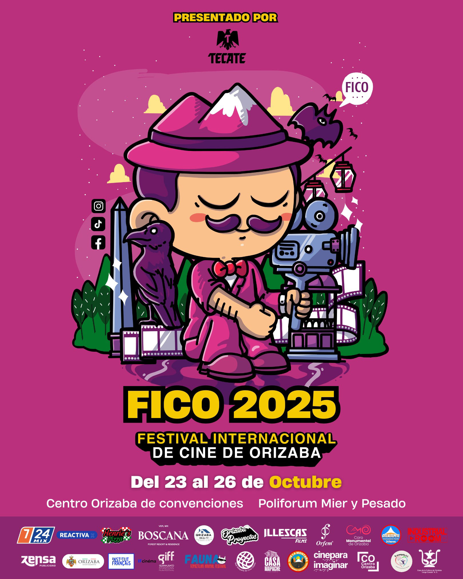 El Festival Internacional de Cine de Orizaba (FICO) celebrará su cuarta edición del 23 al 26 de octubre de 2025, reafirmando a la ciudad como referente cinematográfico en Veracruz. Este año contaremos con dos sedes principales: el Centro Orizaba de Convenciones y el Poliforum Mier y Pesado. La programación será presencial y, días después, la Selección Oficial 2025 podrá disfrutarse en la plataforma Nuestro Cine MX de IMCINE, del 27 de octubre al 7 de noviembre.