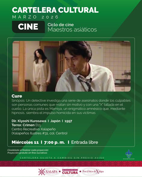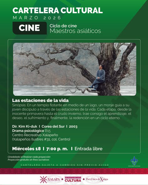 La Dirección de Cultura del Ayuntamiento de Xalapa presenta Maestros asiáticos, un ciclo cinematográfico que reúne tres obras fundamentales del cine contemporáneo de Asia, en colaboración con el Centro Recreativo Xalapeño. Esta programación propone un acercamiento a tres autores imprescindibles cuyas películas han marcado de manera decisiva la historia del cine por la fuerza de sus atmósferas, la profundidad de sus personajes y la potencia de sus preguntas sobre la violencia, la espiritualidad y la existencia.