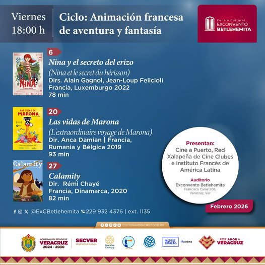 Como primera actividad, el cineclub lanza el ciclo “Animación francesa de aventura y fantasía”, realizado en colaboración con la Red Xalapeña de Cine Clubes, Maraña es cultura AC y el IFAL – Institut français d’Amérique latine, con el acompañamiento de la Secretaría de Cultura de Veracruz, en una programación que celebra la imaginación, el viaje y la fuerza de los relatos animados contemporáneos.